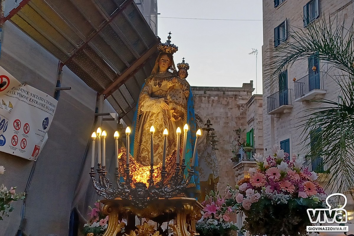 Si è conclusa ieri sera, domenica 8 giugno, la Festa patronale in onore di Maria SS delle Grazie, organizzata dalla Pia Associazione omonima, che quest'anno compie 160 anni di attività. La processione della sacra effigie ha preso il via dalla Concattedrale di Santa Maria Assunta al tramonto, un quadro suggestivo a far da cornice al momento che segna a Giovinazzo l'inizio del periodo delle grandi feste estive. Quest'anno concomitante con la domenica di Pentecoste, momento centrale del calendario liturgico della Chiesa Cattolica.