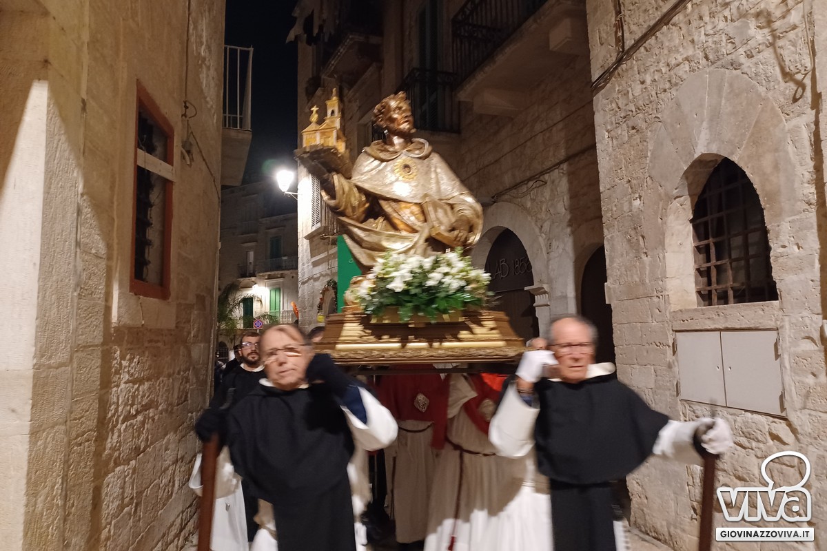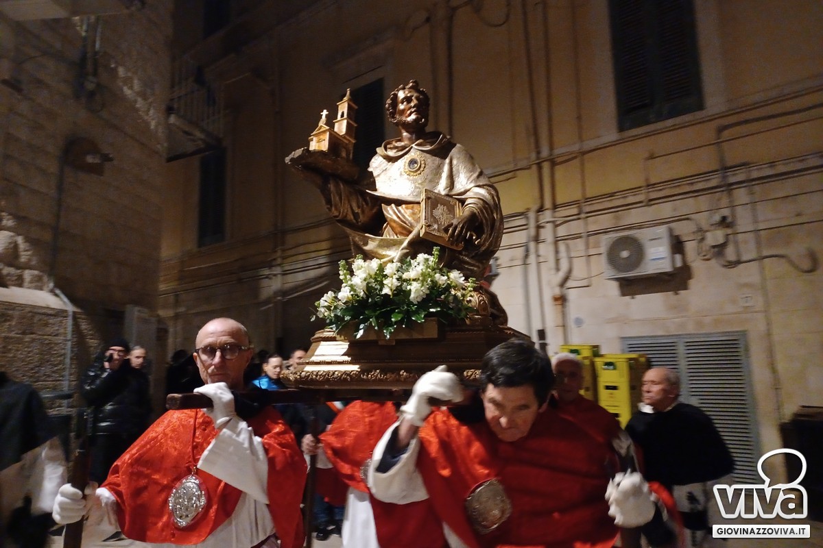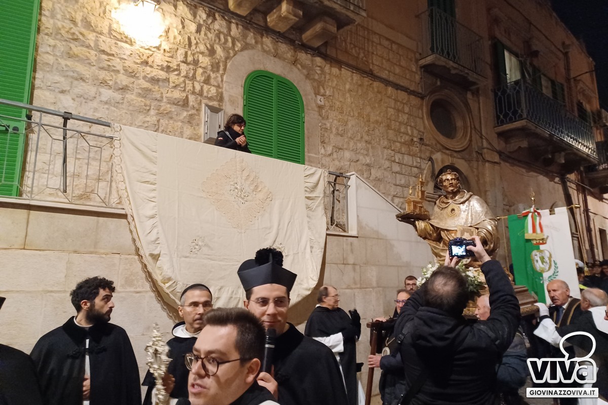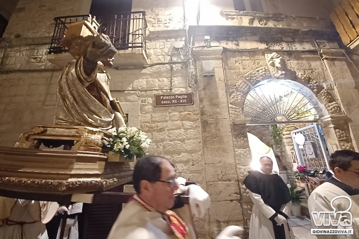 Poco dopo le 19.30 l'avvio della processione da San Domenico, con passaggi suggestivi in piazza San Felice e via Gelso (casa natale del Beato Nicola Paglia) nel centro storico, prima del ritorno verso piazza Vittorio Emanuele II ed il rientro nella Concattedrale di Santa Maria Assunta, dove il mezzobusto è custodito sulla navata laterale destra. Toccante l'atto di affidamento al Beato davanti la sua casa natale curata da padre Tommaso Fallica. Noi vi raccontiamo attraverso i nostri scatti il grande legame tra i giovinazzesi ed il Beato Nicola Paglia a 770 anni dal suo dies natalis.