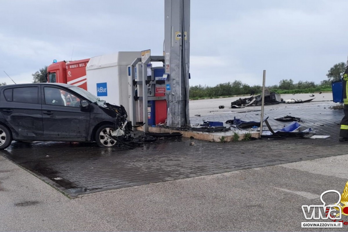 Giovinazzo, slitta sull'asfalto e finisce contro la colonnina del rifornimento