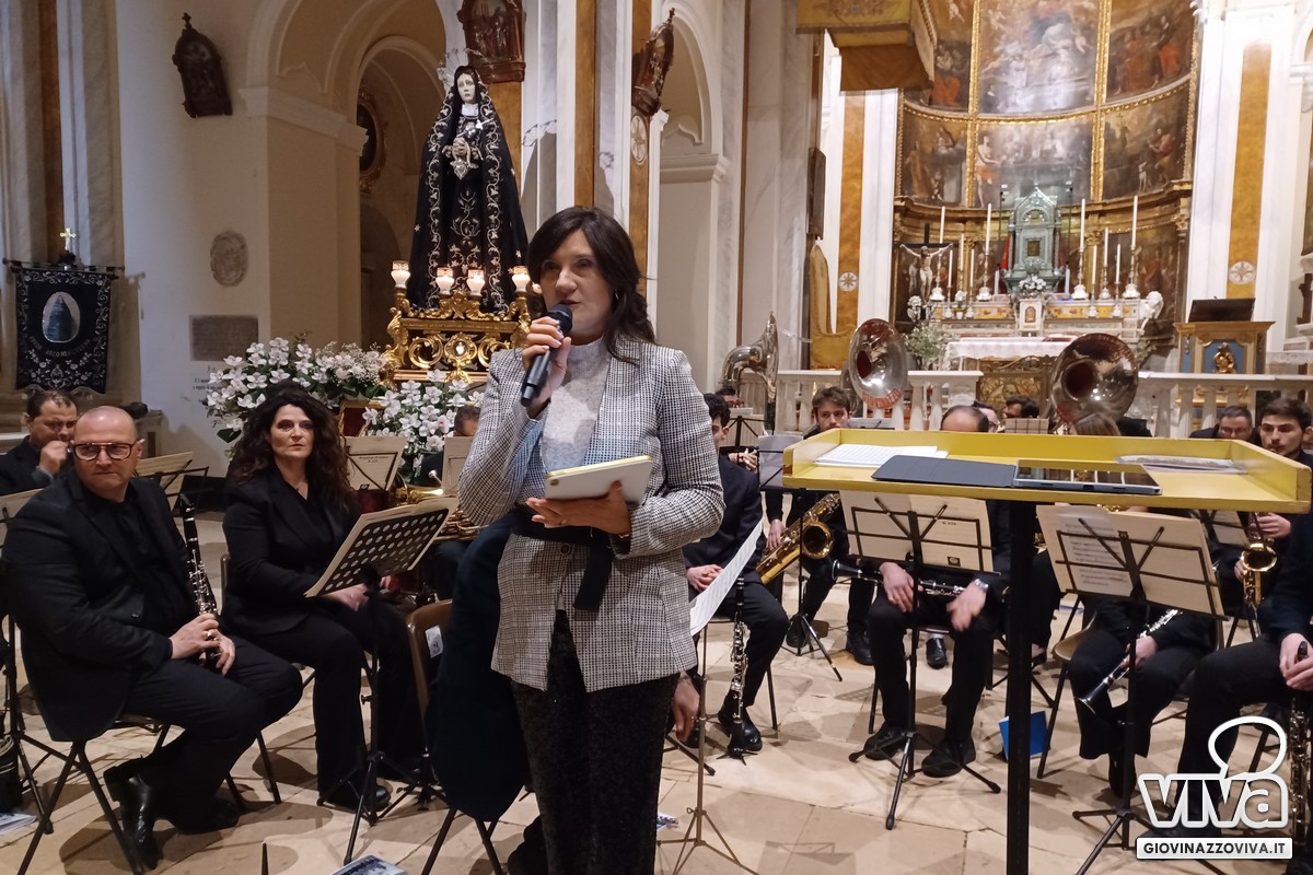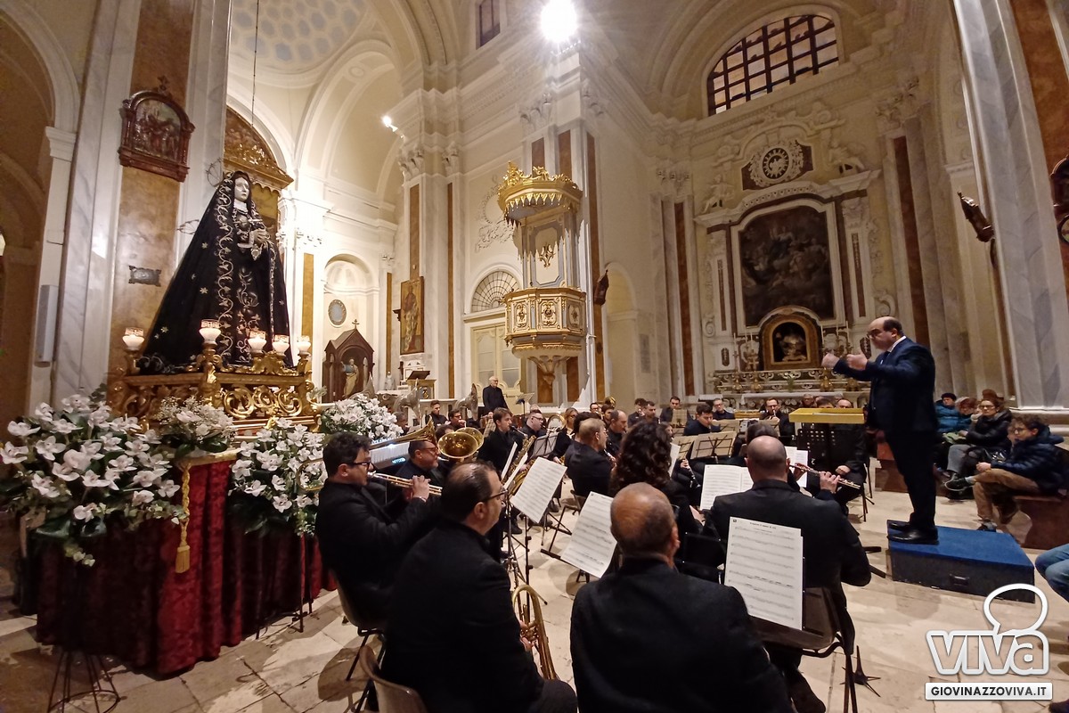 Ad organizzare questa serata, con la musica richiamo alla spiritualità del periodo, è stata la Confraternita di Maria SS della Purificazione guidata da Gaetano Dagostino, sotto la guida spirituale di padre Pasquale Rago, i cui portatori stasera accompagneranno il simulacro dell'Addolorata per le vie della città. La Settimana Santa a Giovinazzo è di fatto già iniziata e le atmosfere cariche di un misto tra fede e tensione emotiva permeano già la comunità di fedeli.