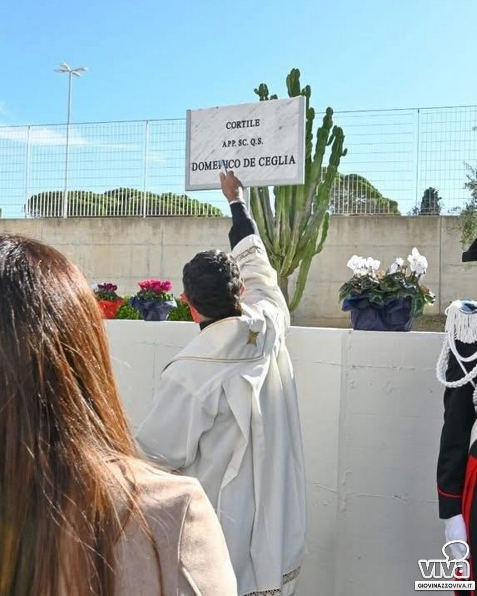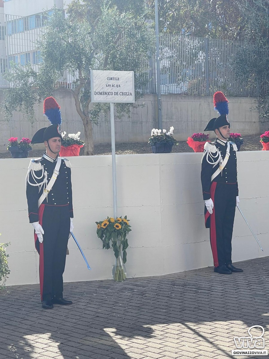 Nella mattinata del 9 ottobre scorso, nel quartiere barese di Santo Spirito, in vico Traversa n. 9, si è svolta la cerimonia di intitolazione del cortile interno della caserma della Stazione Carabinieri all'appuntato scelto Domenico De Ceglia, prematuramente scomparso il 21 settembre 2024.