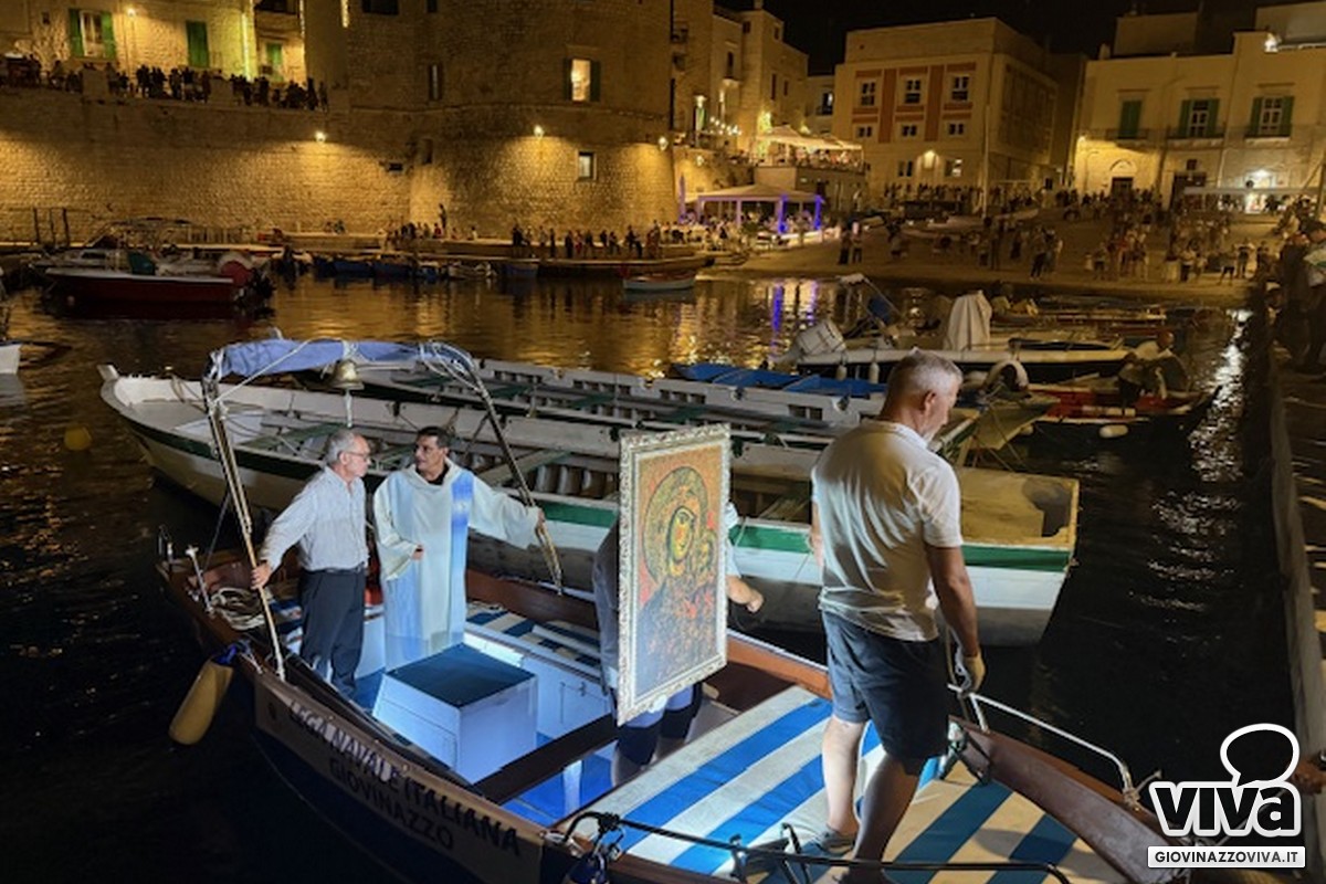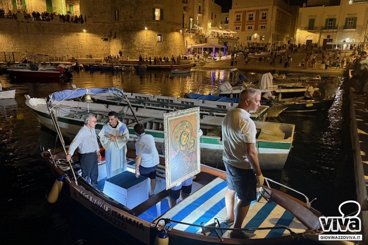 Tutte le associazioni legate al mare hanno partecipato ad una serata che resterà impressa nella memoria di molti giovinazzesi perché ha probabilmente segnato l'inizio di una nuova e meravigliosa tradizione. Il rientro col passaggio da piazza Umberto I, dove, nei pressi della sede della Pro Loco, musici hanno allietato i presenti ed omaggiato la Vergine con note medievali, mentre figuranti hanno proposto un antipasto delle atmosfere di ciò che sarà sabato 16 agosto col grande Corteo Storico.