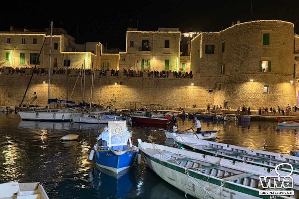 È stato questo il culmine di una giornata che ha di fatto aperto i festeggiamenti in onore di Maria SS di Corsignano, una novità che però pesca nella tradizione, fortemente voluta dal Comitato Feste Patronali presieduto da Pietro Sifo. Dopo la messa vespertina, il quadro della Vergine di Corsignano della Pro Loco è stato portato in processione sino a Cala Porto ed imbarcato su una barca della Lega Navale Giovinazzo. In migliaia hanno assistito a questo momento tra preghiera e devozione, tra spiritualità ed arte, che ha avuto il suo culmine, appunto, in quel canto e quella musica struggenti descritti in apertura.