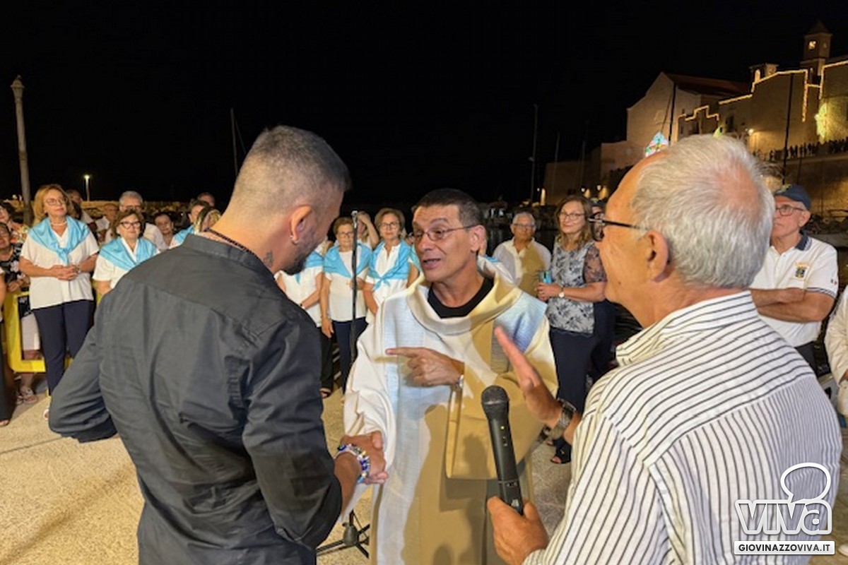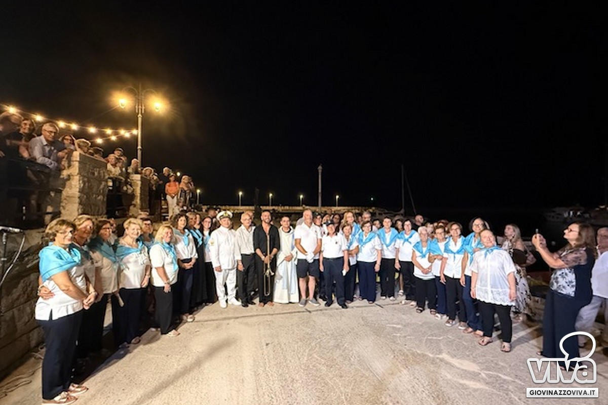 Il canto si è alzato nitido dalla banchina di Levante, rivolto alla Madre Celeste che protegge Giovinazzo da generazioni. Un canto dolce e forte allo stesso tempo, quello della corale delle parrocchie locali, a fare da accompagnamento alla musica struggente al trombone di un ispiratissimo Michele Jamil Marzella, figlio di questa terra, legato come suo padre indissolubilmente alla Patrona amatissima dalla sua gente.