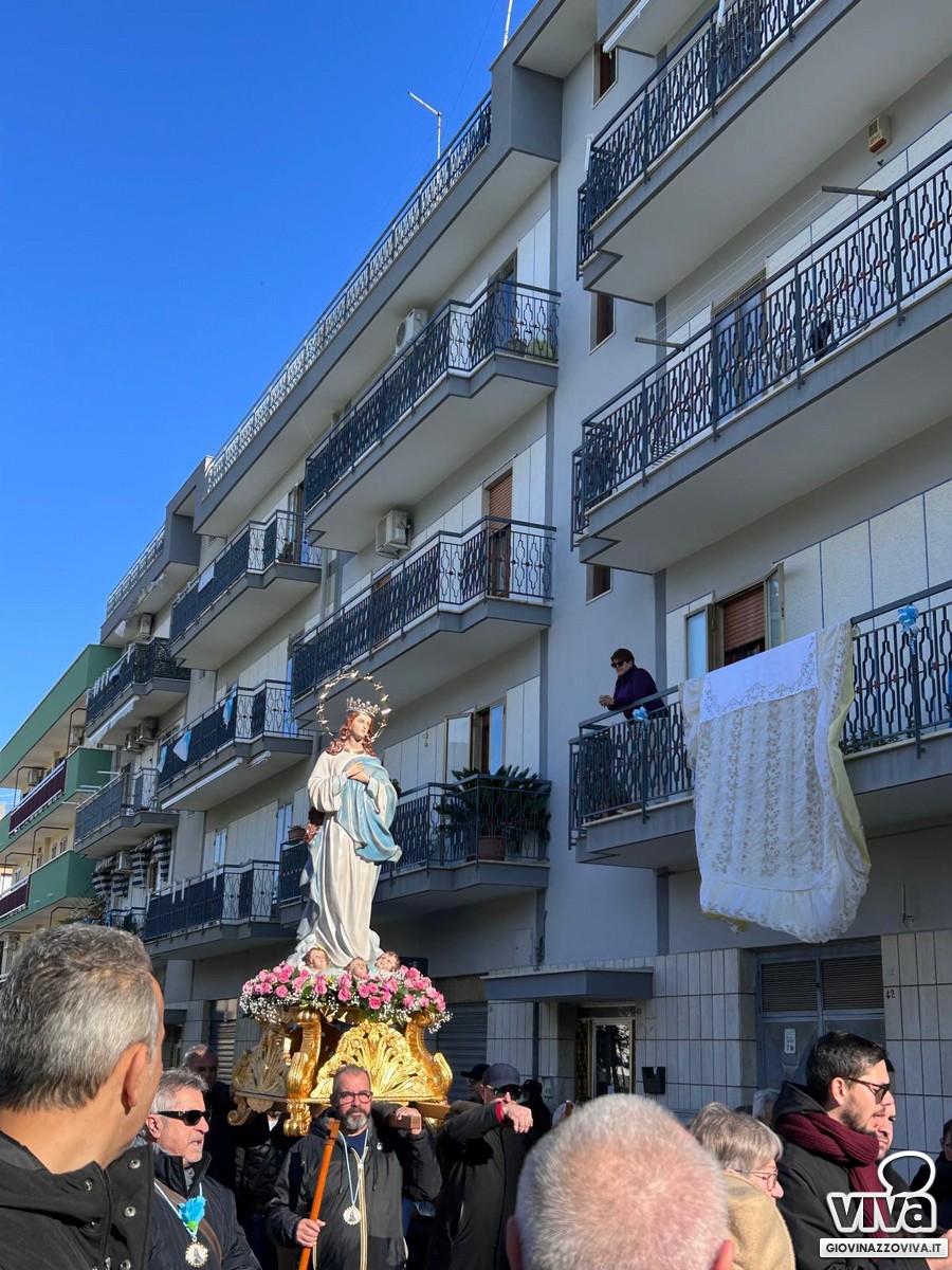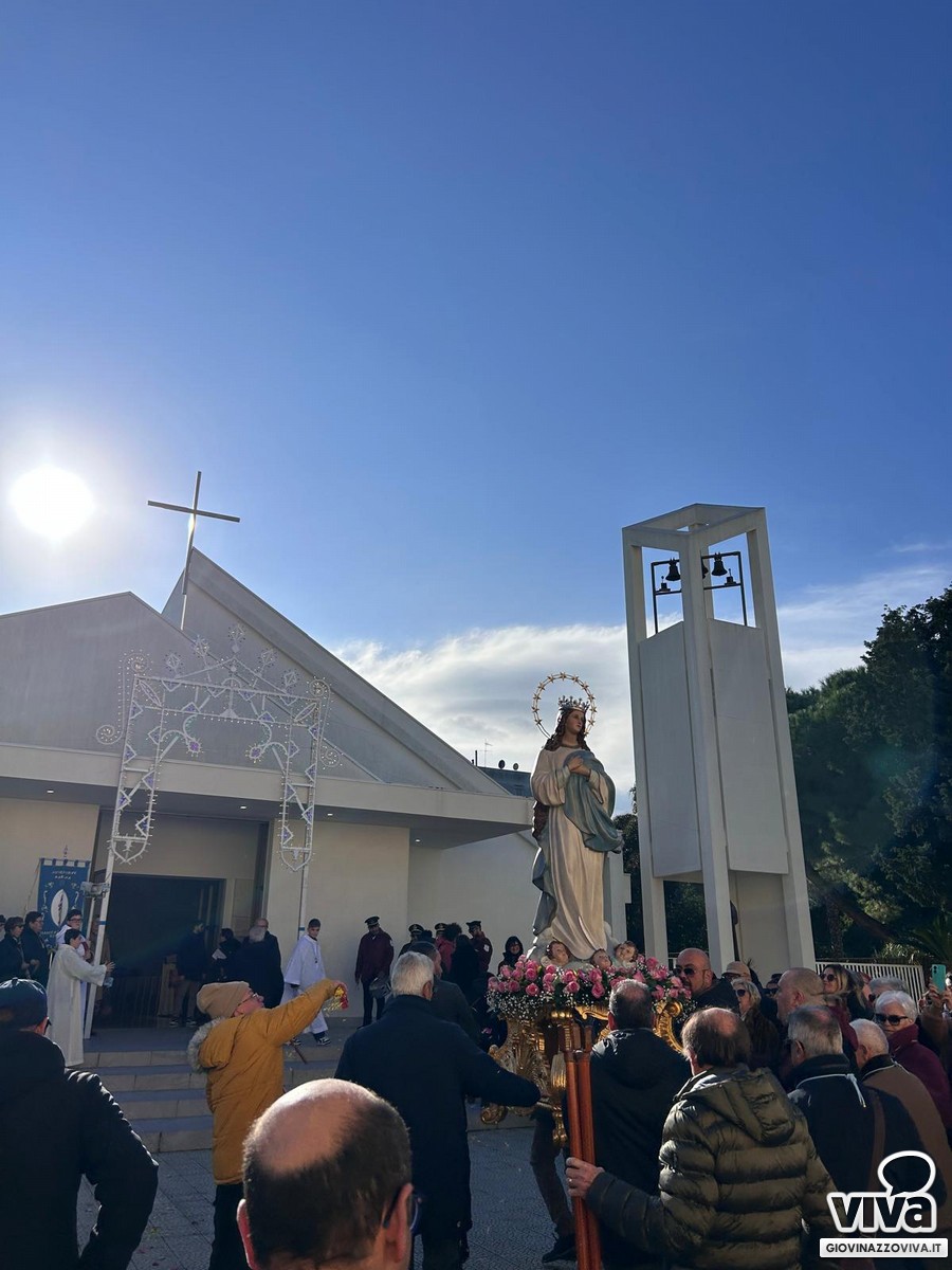 Giovinazzo ha festeggiato la Vergine Maria con un programma liturgico articolato svoltosi nei giorni precedenti all'interno della Parrocchia Maria SS Immacolata guidata nell'omonimo quartiere da don Luigi Ziccolella. Lunedì mattina, dopo la santa messa, da viale Moro è partita una processione con l'effigie dell'Immacolata che ha attraversato via Martiri di via Fani, via G. Ambrosoli, via sott. de Ceglie, via dott. Giulio di Bari, via Colapiccoli, via XX. Settembre, via Fiume, via A. Molino, viale Aldo Moro con ritorno in parrocchia poco prima dell'ora di pranzo.