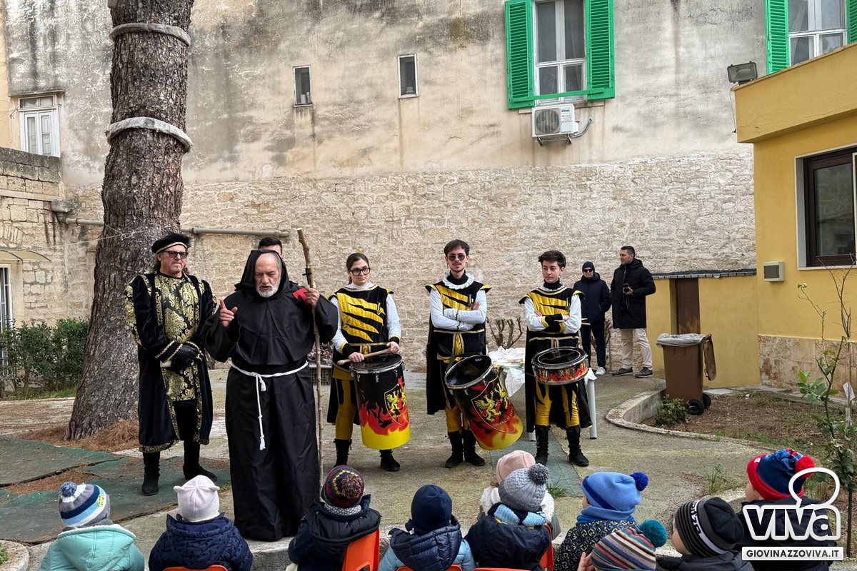 Anche quest'anno l'atteso e interessante momento rivolto all'Infanzia è stata la visita dei timpanisti che hanno introdotto in musica l'entrata del banditore che ha raccontato cenni sulla storia del Santo e del figurante, in questo caso Antonio Leone nel ruolo di Sant'Antonio Abate che ha raccontato ai bambini in età compresa tra i 3 e i 5 anni passaggi salienti della sua storia e della festa che tutta la città vivrà nel lungo fine settimana.