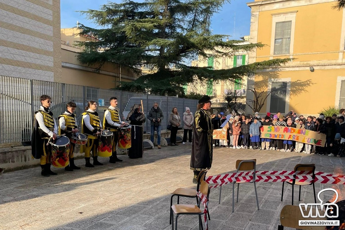 Proprio in riferimento a questi principi, in armonia ed in sinergia, in occasione della Festività in onore di Sant'Antonio Abate è stato messo a punto un calendario di iniziative nel quale sono stati inseriti momenti dedicati ai piccoli della Scuola dell'Infanzia. L'iniziativa più interessante rivolta ai più piccoli, a nostro modesto parere, è stata quella la Cooperativa Sociale Jobra, che ha messo a punto un articolato programma di iniziative con il patrocinio della città di Giovinazzo e della Regione Puglia, e ha proposto di portare un banditore nei Plessi di Scuola dell'Infanzia il giorno prima della festa tradizionale cittadina dei Fuochi in onore di Sant'Antonio Abate.