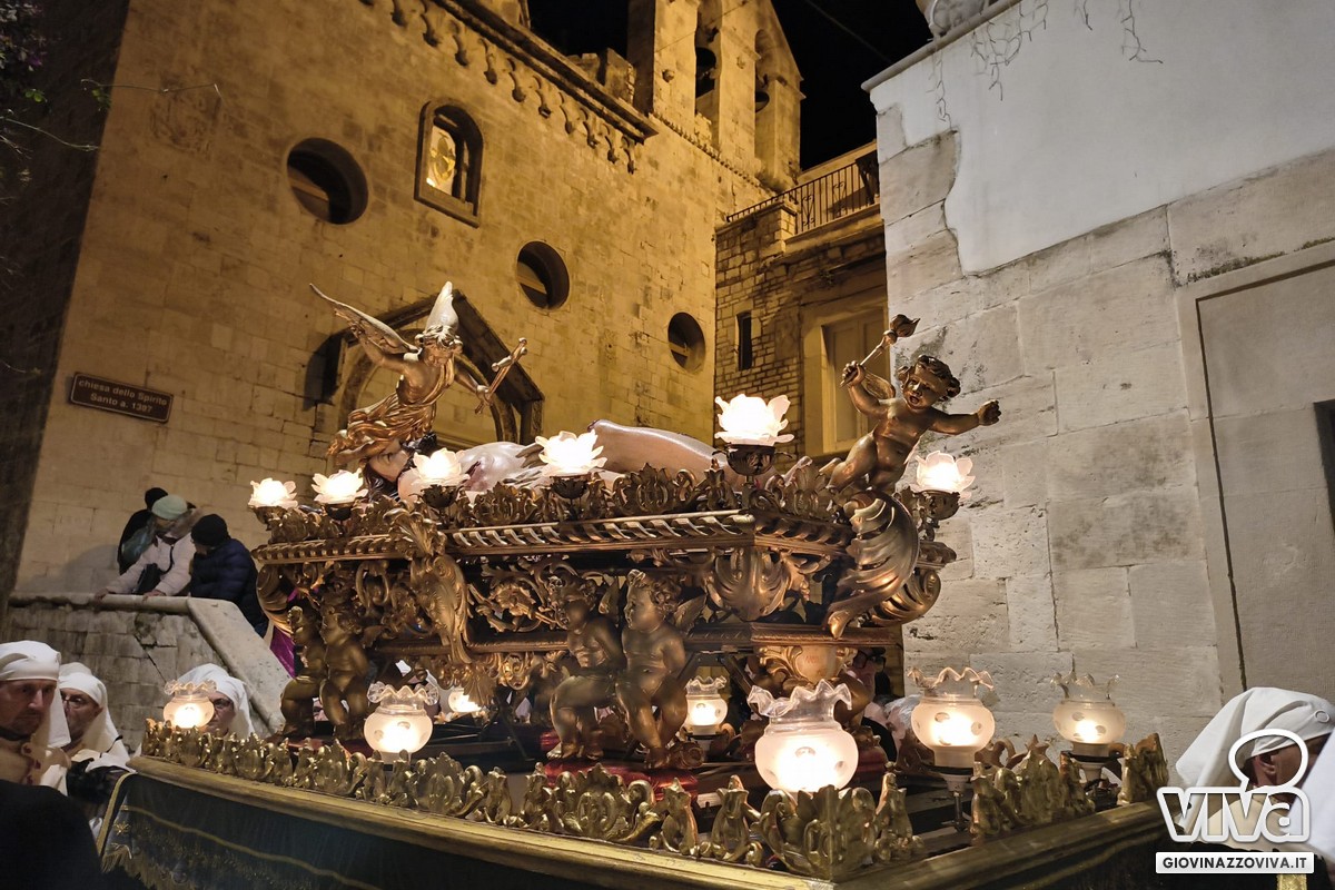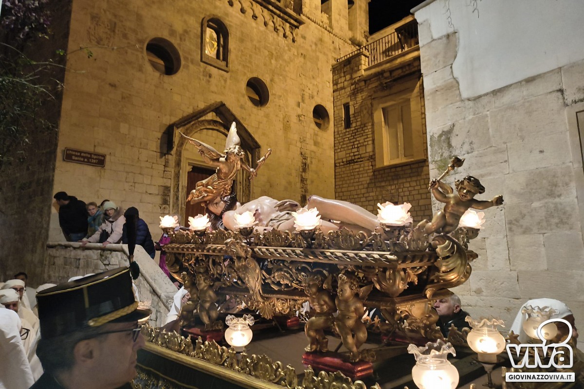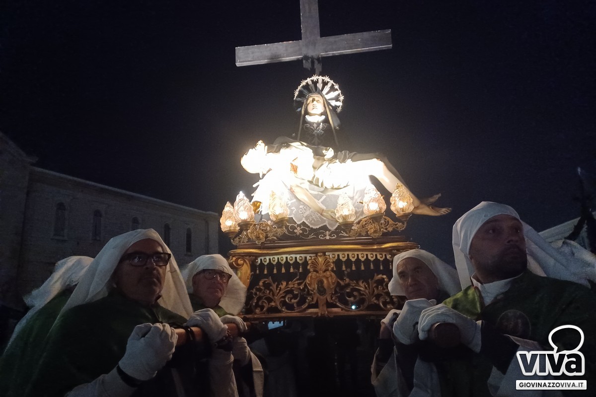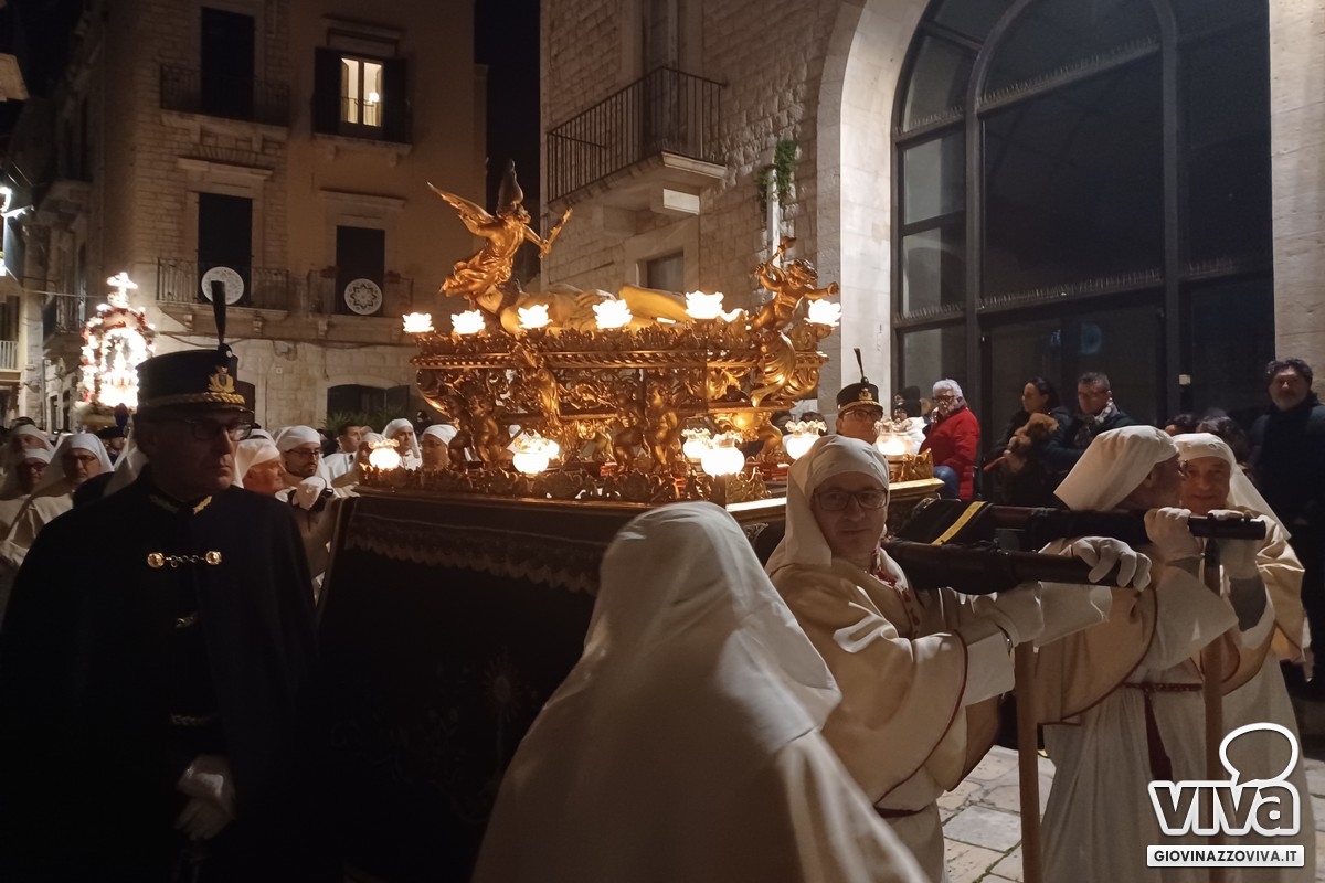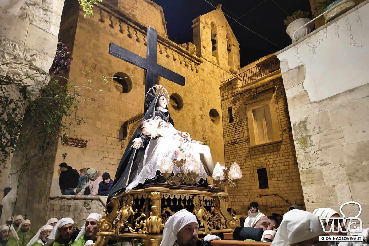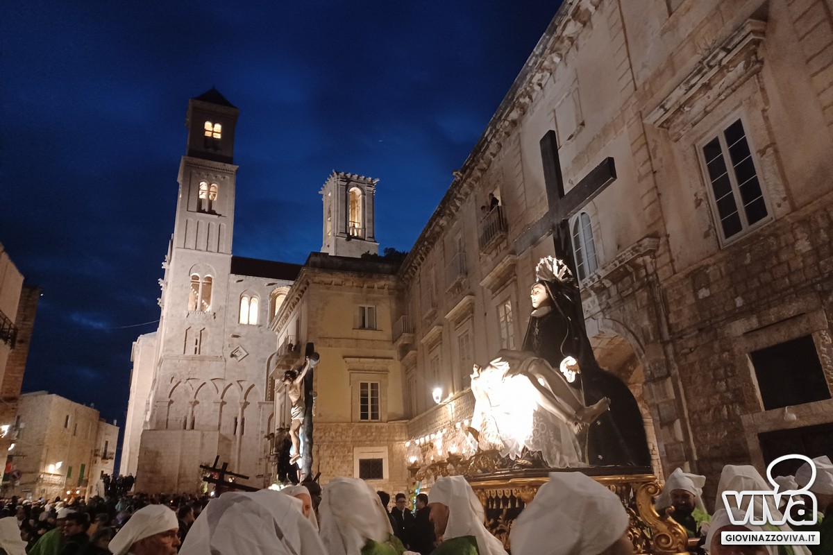 I temi funebri dell'Orchestra di Fiati "Filippo Cortese" e della Bassa Banda "Città di Giovinazzo" hanno accompagnato la processione e scandito i passaggi più emozionanti, intervallando le litanie delle pie donne e delle confraternite.
