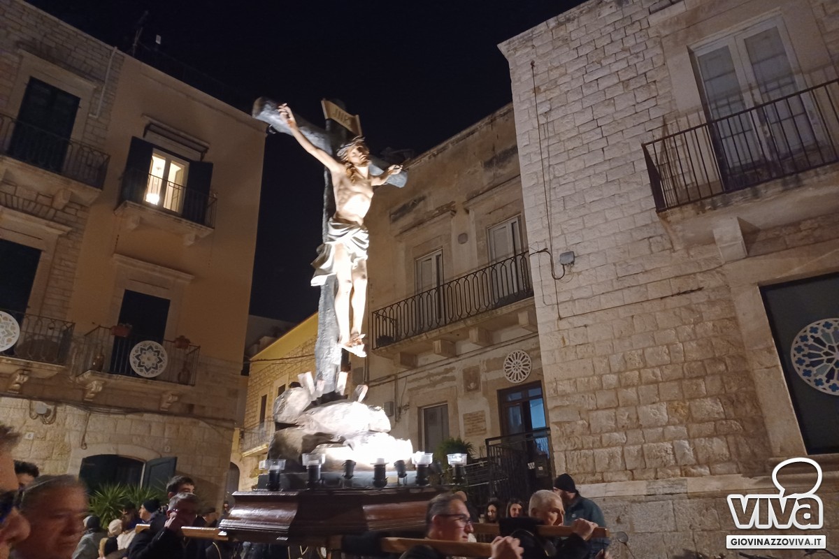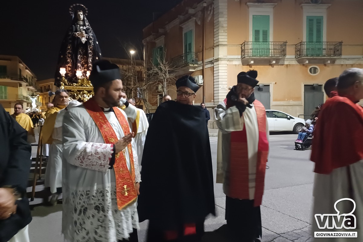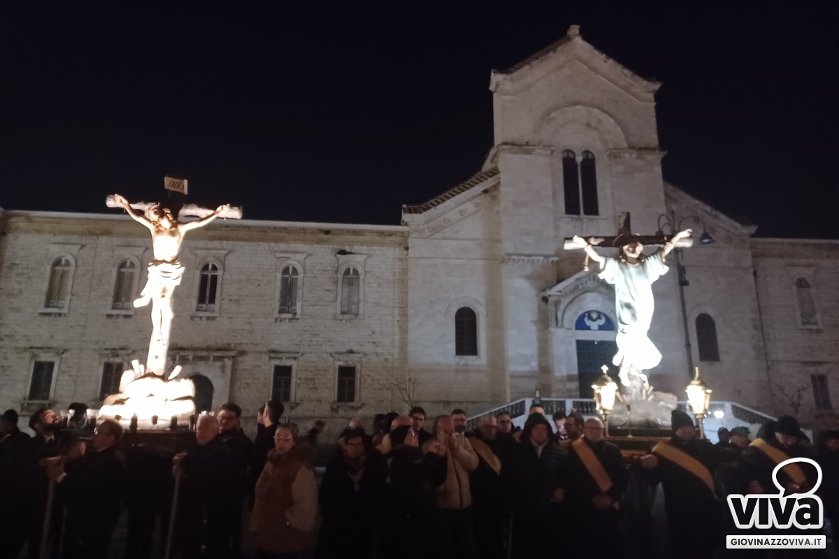 Il rientro in piazza Vittorio Emanuele II con l'allineamento dei simulacri e del Legno Santo e la benedizione impartita dal vicario foraneo, don Cesare Pisani, hanno rappresentato, come accade da qualche anno, la degna chiusura di un Venerdì Santo vissuto tra fede e pietà popolare a Giovinazzo.