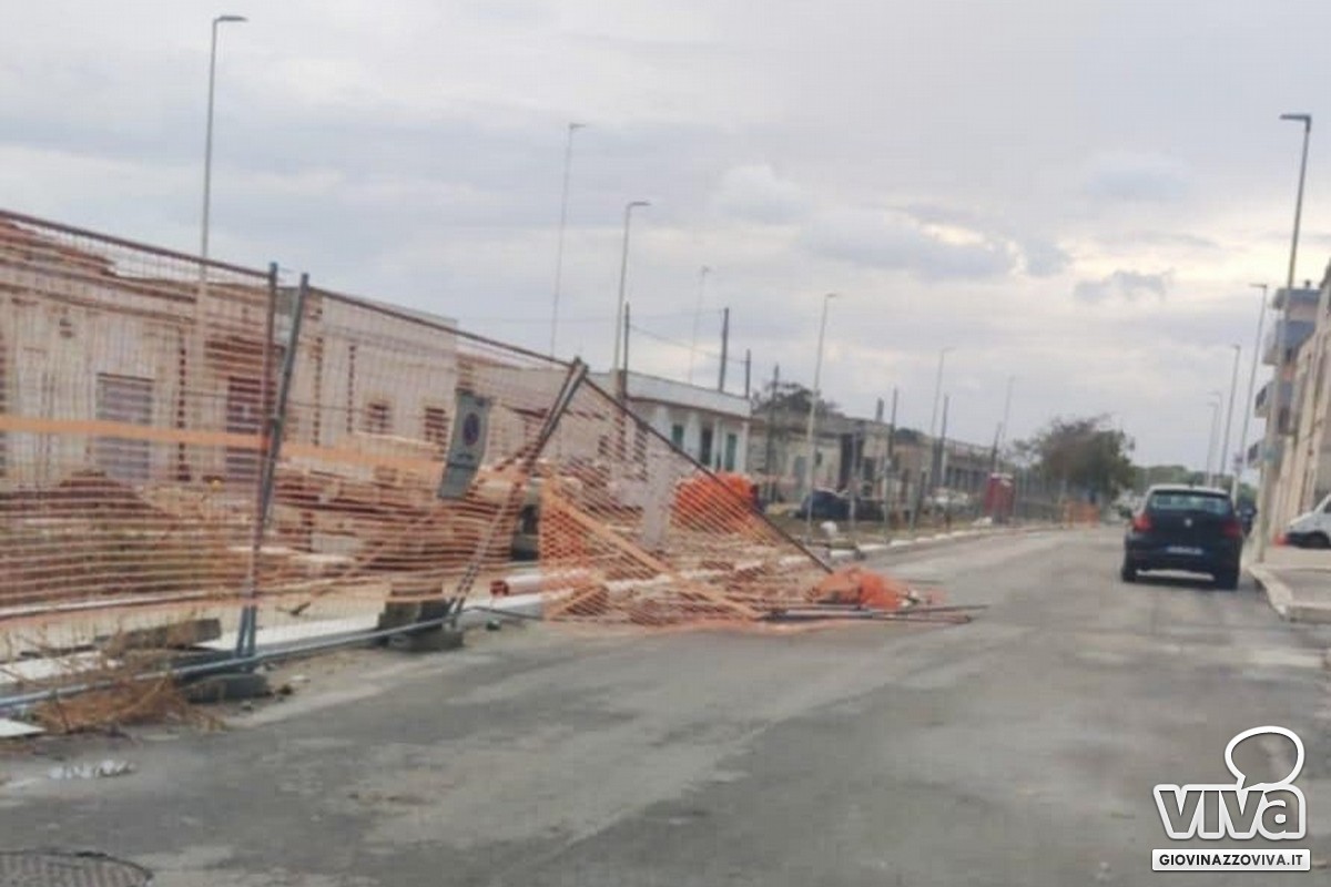 Danni si registrano proprio in quella zona del rione San Giuseppe alle coperture delle ex stalle presenti nell'area urbana C2 ed è stato reso necessario l'intervento dei Vigili del Fuoco. Non lontano, le recinzioni all'area cantierizzata di via Papa Giovanni XXIII sono state abbattute in alcuni segmenti dalla forza delle correnti.