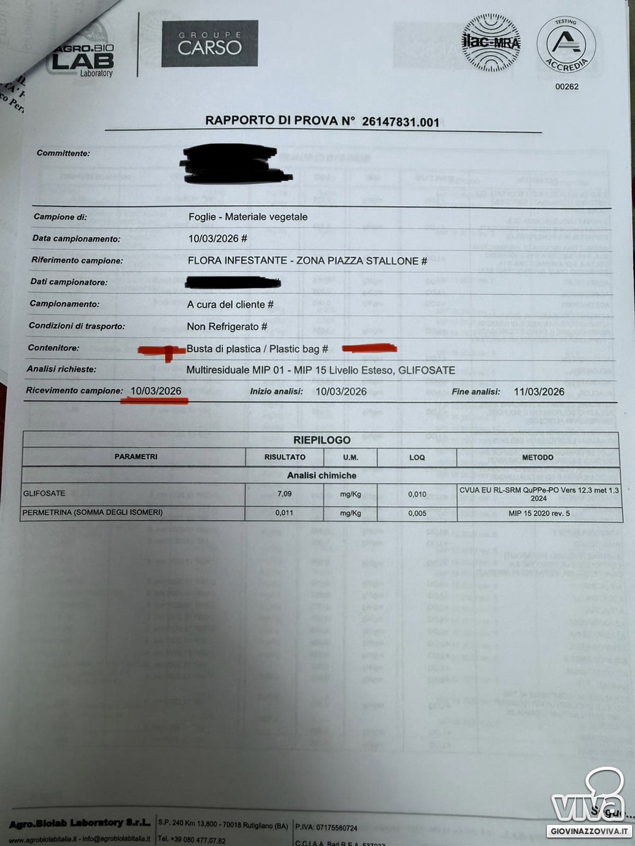 Inoltre, chiunque avrebbe potuto utilizzare prodotti comunque reperibili in commercio sull'area della Piazzetta Stallone, provocando una ipotetica, in astratto, successiva contaminazione. È proprio per questo che il campionamento deve essere eseguito da personale specializzato, seguendo protocolli tecnici rigorosi e nell'immediatezza dell'evento. Agire diversamente significa rischiare di attribuire colpe infondate, con risvolti potenzialmente diffamatori, nonché generare allarme senza un riscontro scientifico basato sulle linee guida ufficiali.